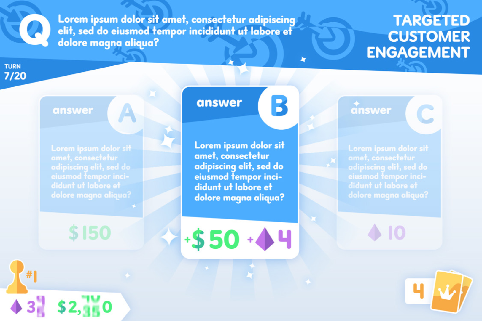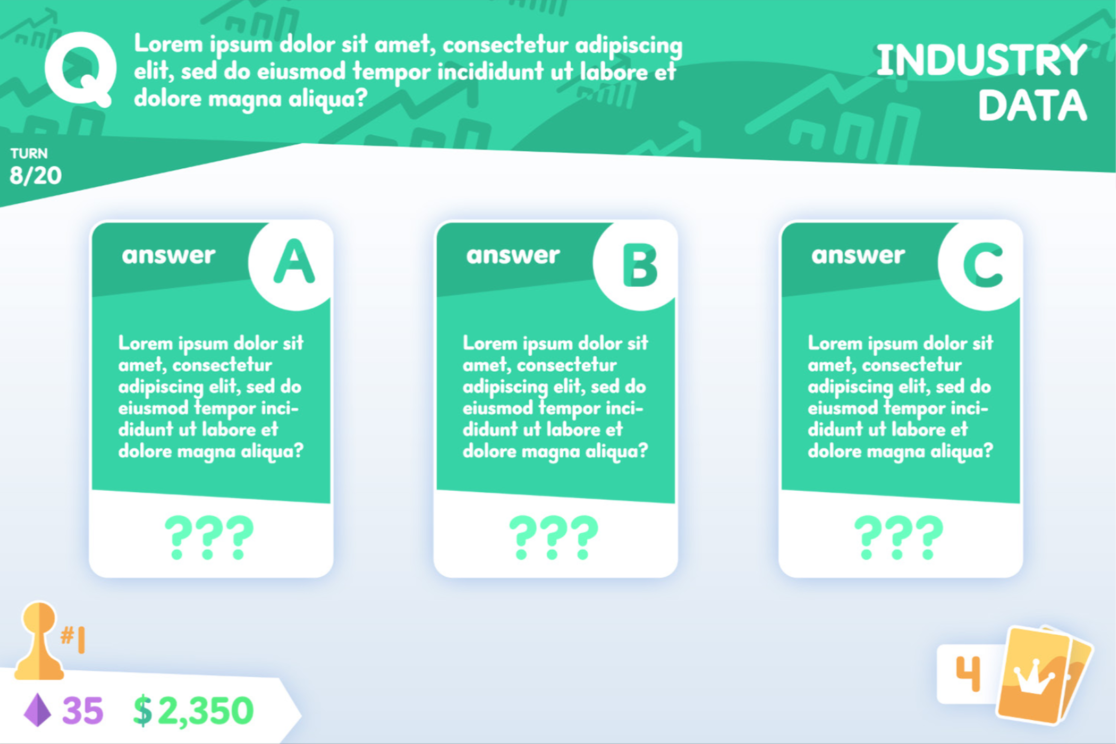 The gameplay was designed to be a strategic reflection of MSM’s value. Players encountered a variety of themed question categories, each with distinct visuals to enhance clarity and engagement. These questions were not simple trivia; they were scenario-based interactions that required players to make strategic decisions mirroring real-world business challenges. This approach effectively showcased MSM’s ability to align solutions with client needs, turning a simple game into a powerful tool for setting the stage for meaningful, post-event conversations.